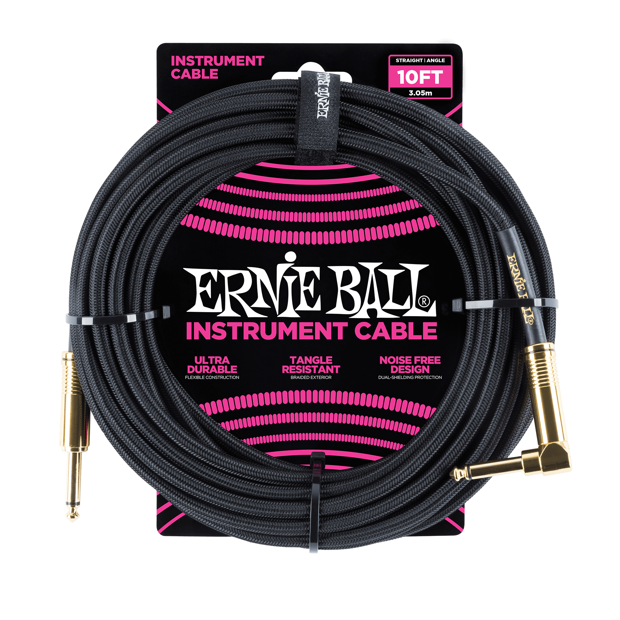 Ernie Ball instrument cables feature a high-quality design made with superior components that are built to last. Dual-conductors deliver reliably clear tone with crisp highs, tight mids, and rich harmonics. Multiple shielding materials preserve the signal with low handling noise, and the braided jacket exterior provides a tangle-resistant experience. Cable length 10ft (3.05m).