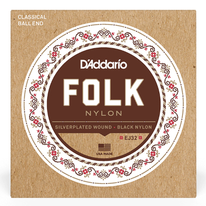 D’ADDARIO FOLK SILVER WOUND / BLACK NYLON GUITAR STRING SET BALL END