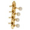 These new, professional model mandolin machine heads are the latest in technology. A specially designed, adjustable worm gear along with the die cast base maintains the center lines of the gear and worm to insure correct alignment for the finest tuning possible. The worm to gear ratio is 18:1.
